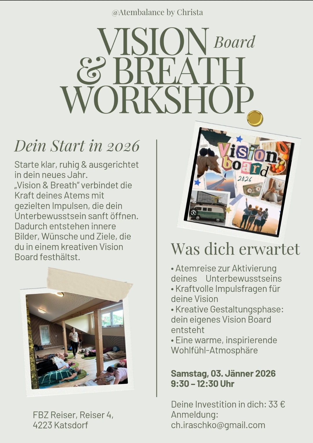 Du beruhigst dein Nervensystem, klärst deine innere Ausrichtung und gestaltest anschließend dein ganz persönliches Vision Board für 2026.