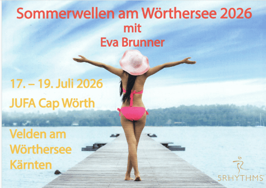 SOMMERWELLEN am Wörthersee 2026 mit Eva Brunner 17. – 19. Juli 2026 “Shed the past, forget the future, and fall into the moment feet first.” G.Roth Eintauchen in die Wellen der 5Rhythmen, Eintauchen in die Wellen des Wörthersees. mit Eva Brunner „The dance is not where we lose ourselves. But where we find ourselves.“ G.Roth In Zeiten wie diesen taucht manchmal der Wunsch auf, zu verschwinden. Sich aus diesem Schlamassel, das sich Leben nennt, zu entfernen. Um nichts mehr zu spüren, um nicht mehr reagieren zu müssen, um Atem zu holen. Wir alle habe unsere bewährten Methoden dafür. Der Tanz lädt dich ein, präsent zu sein mit allem, was dich gerade bewegt. Das kann ekstatisch sein, das kann unangenehm sein – und doch ist es der…