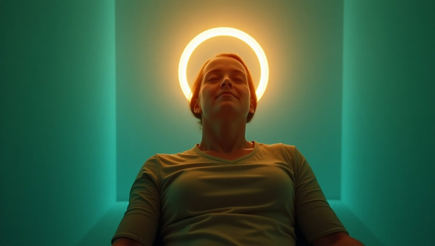 Bei einer TMS-Sitzung sitzt die behandelte Person entspannt in einem Stuhl. Über dem Kopf wird eine Spule platziert, die kurze Magnetimpulse abgibt. Diese Impulse sind schmerzfrei; manchmal spürt man ein leichtes Klopfen oder Muskelzucken.