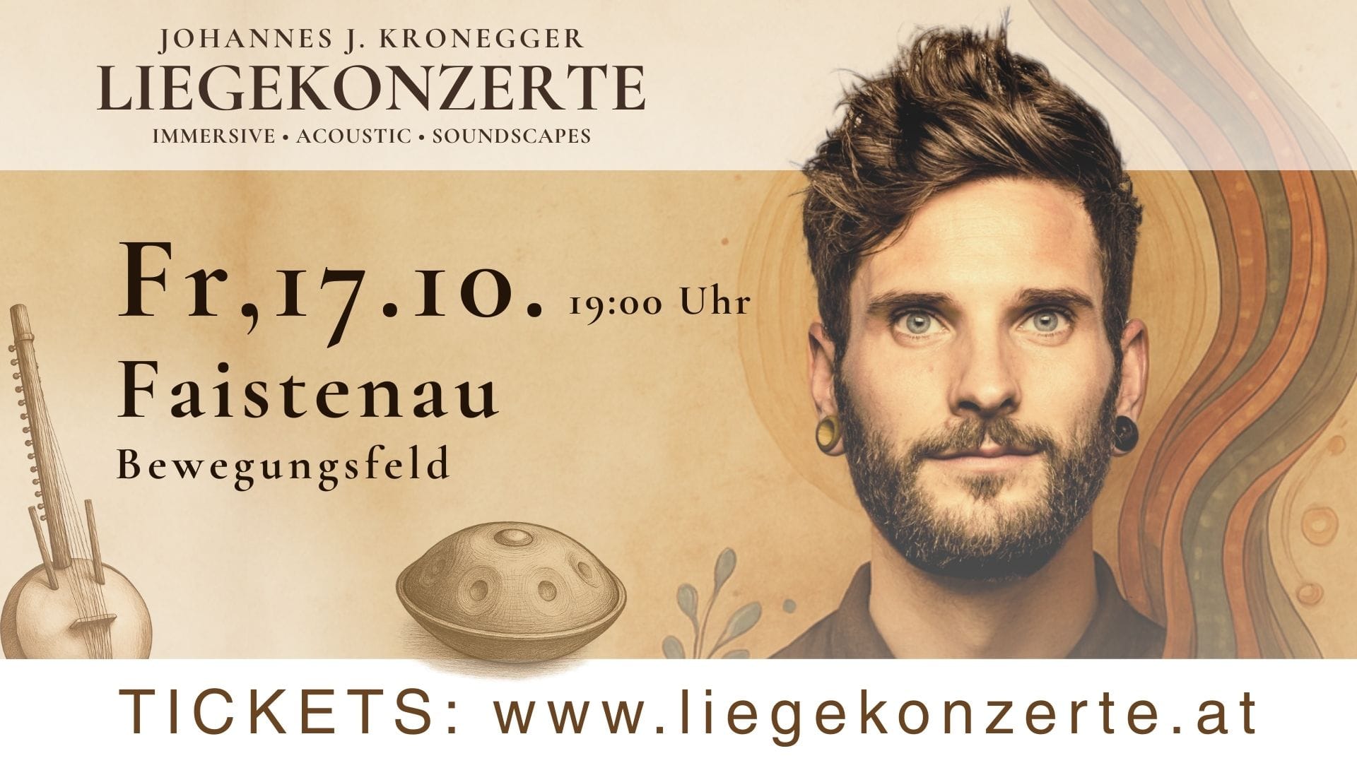 Bewegungsfeld Stegleitnerst. 3, Faistenau, SalzburgEin Erlebnis, das unter die Haut geht! Stell dir vor: Du liegst entspannt, die Augen geschlossen – und aus dem Raum wird ein Klangfeld, das dich vollständig umhüllt. Jeder Ton entsteht live, einzig für diesen Moment – lebendig, einmalig und zutiefst berührend. Kein Lärm, keine Ablenkung. Nur du und die Musik. Der Trubel des Alltags verblasst. Gedanken werden leiser. Du tauchst ein in einen Zustand der Ruhe, in dem nur das Jetzt zählt. Die Klänge durchdringen dich sanft und berühren Ebenen, die im Alltag oft verborgen bleiben – sie erinnern dich an etwas Ursprüngliches in dir. Ein Liegekonzert ist weit mehr als Musik – es ist eine Einladung, dir selbst zu begegnen. Ein Raum voller Klang, in dem du loslassen, auftanken und tief in dich…